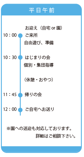 以下の項目に関して、具体的にお子様に合わせたプログラムを作成します。・心身の健康や生活に関する領域「健康・生活」