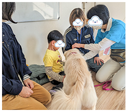 普段なかなか目にすることの無いような大型犬と触れ合うことができて、楽しくて癒されるひと時を過ごしていただいてのではないかと思います。ハグも添い寝も何でもできる、大きくてとっても優しいワンちゃん達でしたね!命の大切さなどを実感していただくきっかけになればと思っております。
