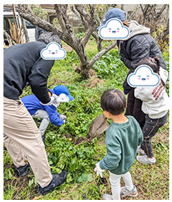 保護者の方々も今回はスコップなどで掘り起こしを手伝っていただいて、楽しくジャガイモも収穫できました。