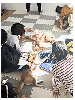 今回はセラピードッグの「つるこ」と「メル」が来てくれました。とてもおとなしく、優しい子たちでしたね。