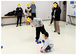 現在かもめハウスで取り組んでいるボッチャですが、保護者の皆様にも体験して頂こうと、練習会を開催しました。子供たちは重いボッチャのボールをしっかりコントロールできている場面も多く、子ども対大人の対戦では、子どもチームが勝った回もありました。