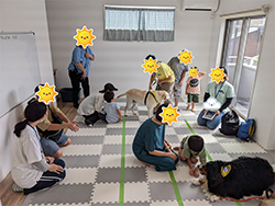 2階の指導訓練室にてドッグセラピーを開催しました。たくさんの皆さんに参加いただきました。ありがとうございました。