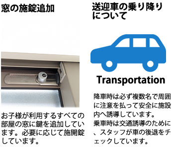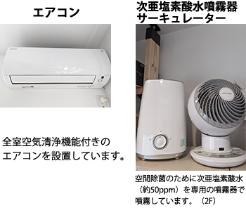 かもめハウスでは以下の設備を導入し、ご利用者が安心して快適に過ごしていただけるよう、安全対策や感染対策に努めています。感染対策