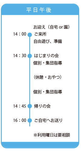 以下の項目に関して、具体的にお子様に合わせたプログラムを作成します。・心身の健康や生活に関する領域「健康・生活」