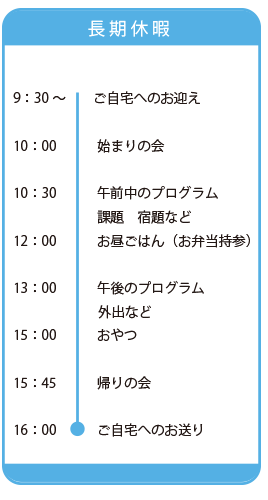 平日のご利用時間は、原則としては午後の放課後ですが、状況によっては午前のご利用も対応できる場合があります。
